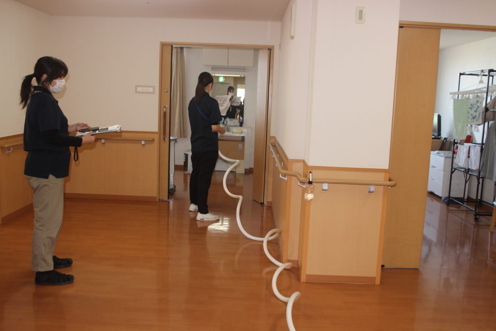 通報から避難アナウンス、ご利用者さまの避難、関係職員による初期消火実施なと円滑に進めることができ、いつ起こるか分からない災害に即応できるよう、あらためて訓練の重要性を確認・共有しました
