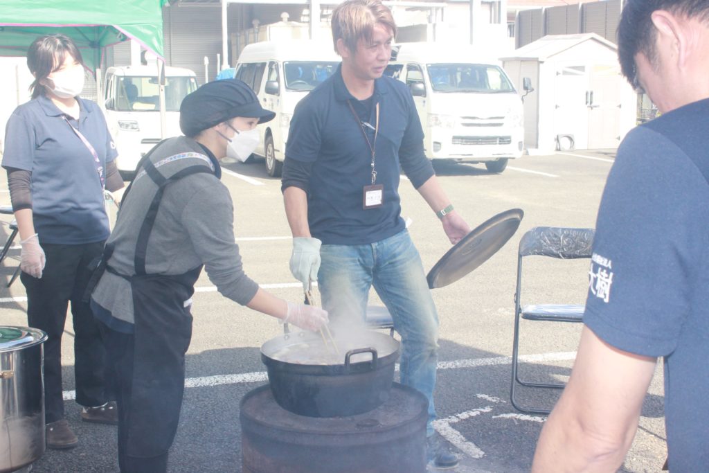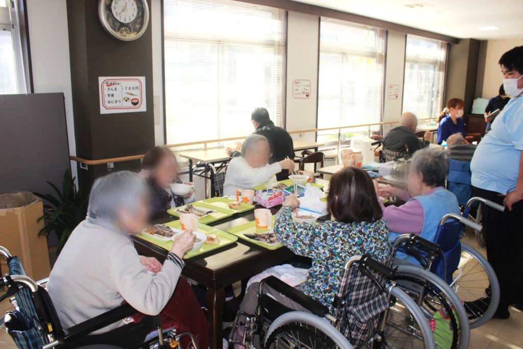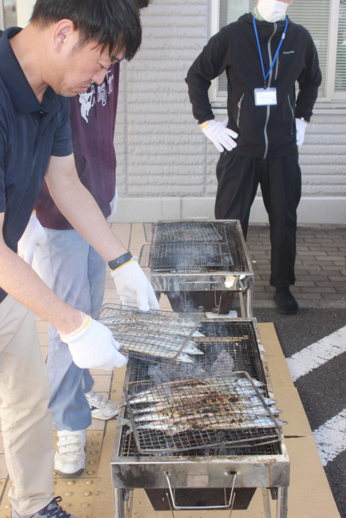 大樹恒例の「大樹さんま祭り」を11月5・6日にせんじゅを会場に開催しました。このさんま祭りは今年で5回目、大樹事業所の利用者さまを対象に実施しており、毎年楽しみにしている行事の一つとなっています。職員により炭火でさんまを焼き、薪かまどでは山形いも煮を調理し、会場には食欲をそそる煙がたなびいており、利用者さまは〝さんま〟と〝いも煮に〟一段と箸が進み、味覚の秋を堪能していただきました。